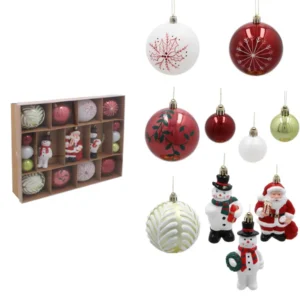 Az üveghatású, mégis törésálló 23 darabos karácsonyfadísz készlettel pillanatok alatt ünnepi ragyogást teremthetsz, miközben a vegyes színek és formák harmonikusan illeszkednek bármilyen dekorációs stílushoz.