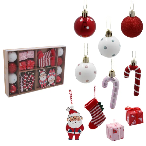 24 darabos karácsonyfadísz készlet – vegyes színek, műanyag