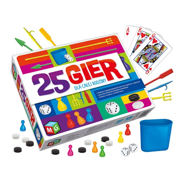 Egyszerre 25 klasszikus társasjáték egy dobozban, hogy minden családi este változatos, izgalmas és fejlesztő szórakozássá váljon; a komplett tartozékoknak köszönhetően azonnal kezdhetitek a játékot.