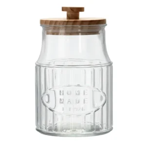 A 2,6 literes, csíkos üveg légmentesen záródó fa tetővel őrzi a lekvárok, mézek és fűszerek frissességét. Praktikus mérete és elegáns megjelenése miatt konyhapulton, kamrában vagy ajándékként is tökéletes választás.