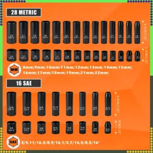 3/8″-os, 50 részes Cr-V ütvecsavarozó dugókulcs készlet SAE és metrikus
