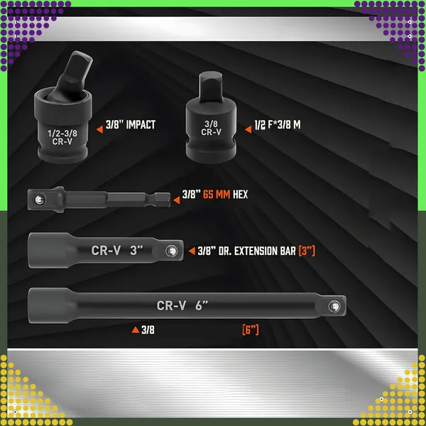 A 50 részes, 3/8"-os ütvecsavarozó dugókulcs készlet mindent tartalmaz, amire egy autószerelőnek vagy barkácsolónak a gyors, biztonságos csavarozáshoz szüksége lehet. A SAE és metrikus, 6-pontos dugókulcsok Cr-V acélból készültek, így bírják a nagy ütőnyomatékot és nem kopnak el idő előtt.