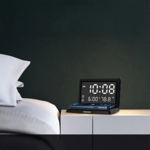 Dobd fel hálószobádat vagy irodád asztalát ezzel a modern, többfunkciós készülékkel, amely egyszerre ébresztőóra, 15 W-os Qi vezeték nélküli töltő és hőmérőt is tartalmazó tükörkijelző.