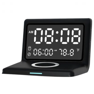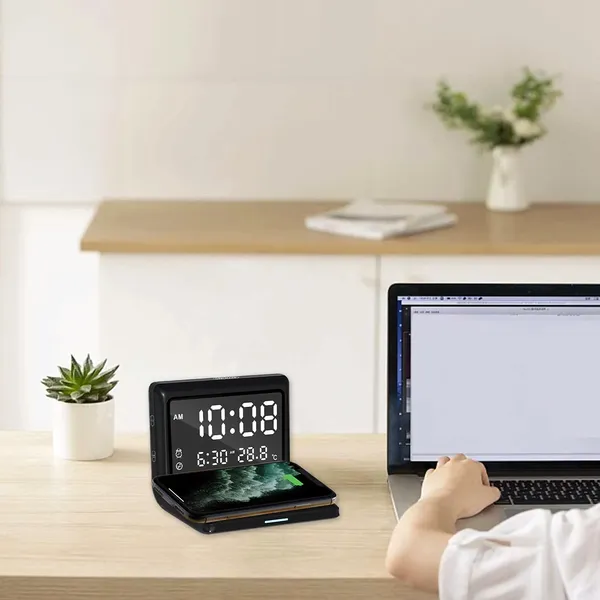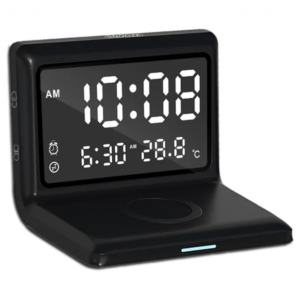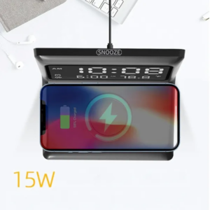 3 az 1-ben digitális ébresztőóra 15 W vezeték nélküli töltővel és hőmérővel