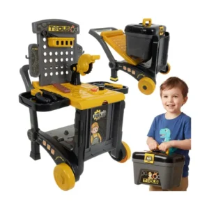 Változatos, 3 az 1-ben játékműhely, amely műhelyként és gurulós kocsiként is használható, így a szerelős szerepjáték mindig friss marad. A sok kiegészítő segíti a kézügyesség és a kreativitás fejlődését, a tárolók pedig megkönnyítik a rendet játék után.