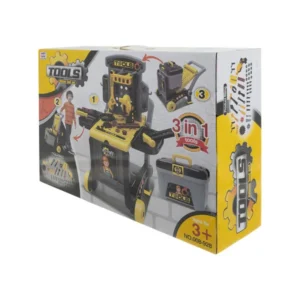 3 az 1-ben gyerek játékszerelő műhely 59 db-os, gurulós kocsi
