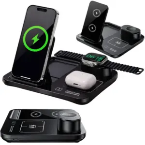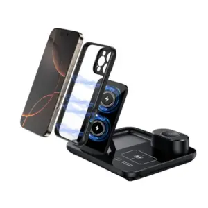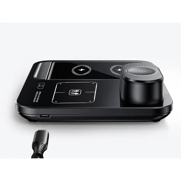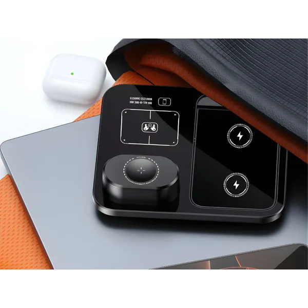 Egyetlen töltőállomáson töltheted a telefonodat, az okosórádat és a vezeték nélküli fülhallgatódat, így kevesebb kábel marad az asztalon. Letisztult kialakítása jól mutat a dolgozósarokban vagy az éjjeliszekrényen, és segít, hogy az eszközeid mindig kéznél legyenek.