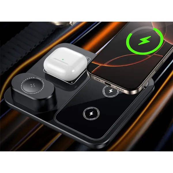 3 az 1-ben gyors vezeték nélküli töltőállomás telefonhoz, órához, fülhallgatóhoz