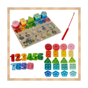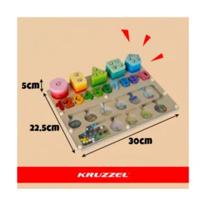A 3 az 1-ben Montessori fa fejlesztő válogató tábla ideális választás otthoni játékhoz, óvodába vagy utazáshoz. Egyetlen kompakt táblán három, egymást kiegészítő tevékenység segíti a tanulást játék közben: mágneses golyós labirintus, geometriai formák párosítása és számok gyakorlása.