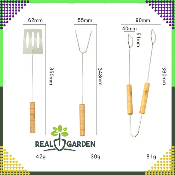 Készülj fel a grillszezonra ezzel a sokoldalú, 3 részes eszközkészlettel! Az erős, rozsdamentes acél fejek biztosítják a tartósságot, míg a hőálló fa nyél kényelmes, csúszásmentes fogást ad. A készlet segítségével magabiztosan kezelheted a húsokat, zöldségeket és burgereket a kerti partikon.