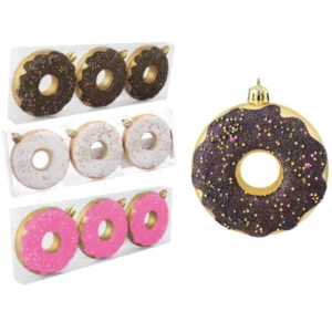 3 darab fánk alakú karácsonyfadísz készlet, 8 cm