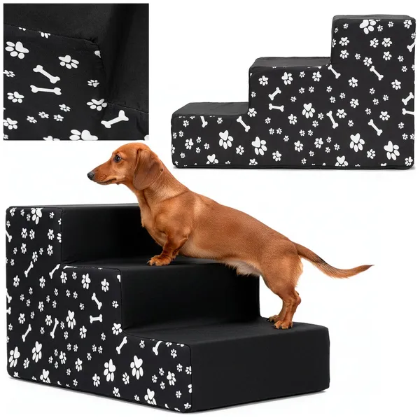 Kíméletes megoldás, hogy kutyád biztonságosan feljusson a kanapéra vagy ágyra: a 3 lépcső stabil, csúszásgátló aljjal készül. A cipzáras, levehető huzat könnyen tisztítható, a nagy sűrűségű szivacs pedig kényelmes és tartós támaszt ad a mindennapi használathoz.