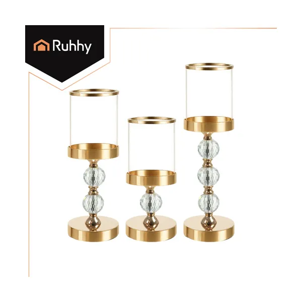 3 részes arany üveg gyertyatartó lámpás szett tükrös betéttel
