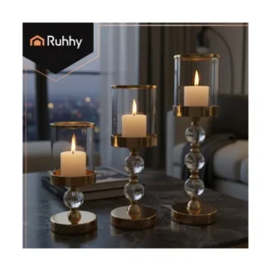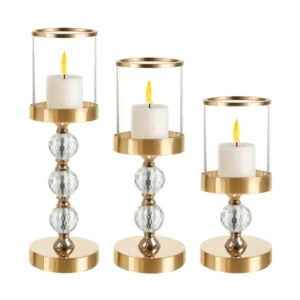 Képzeld el, ahogy a gyertyafény finoman visszatükröződik a tükrös felületeken, a kristályhatású díszítések pedig elegáns csillogást adnak a térnek. Ez a 3 részes üveg gyertyatartó lámpás szett egyszerre dekoráció és hangulatteremtő kiegészítő: nappaliban, hálóban, étkezőben vagy akár a fürdőben is látványos.