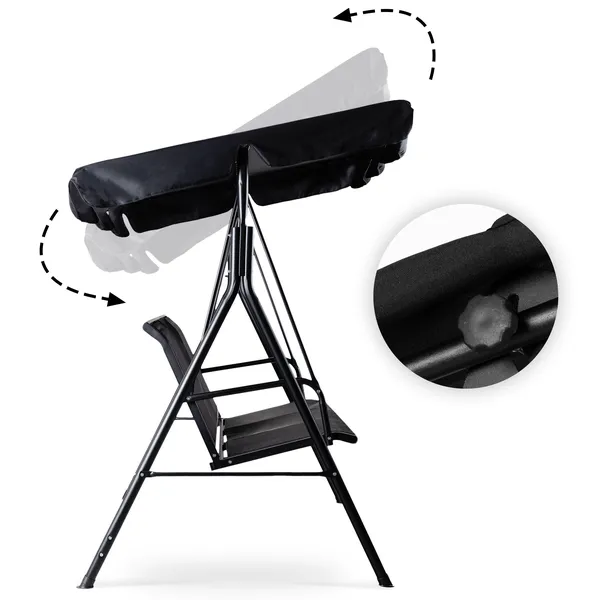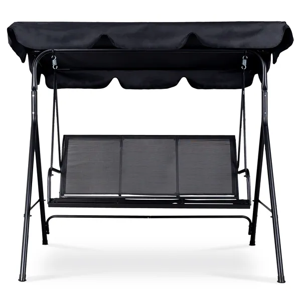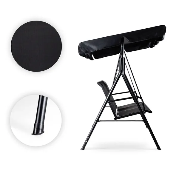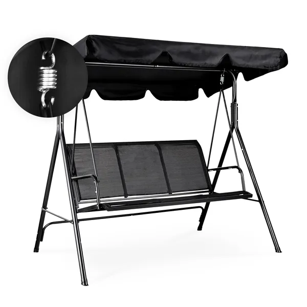 3 személyes fekete kerti hinta acél vázzal, napellenzővel