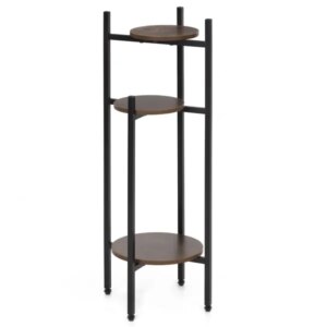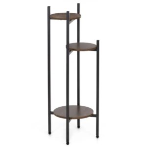 3 szintes fém virágtartó állvány MDF polcokkal, 81 cm, fekete–barna