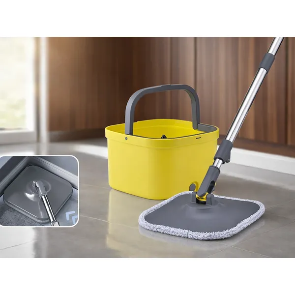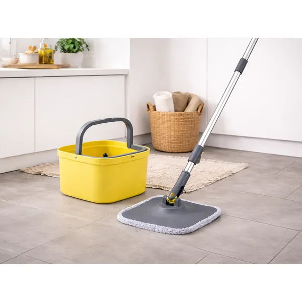 Higiénikusabb felmosás a kétrekeszes vödörnek köszönhetően: a tiszta víz nem keveredik a szennyezettel, a spin csavaró pedig kézi erőlködés nélkül segít. A 360°-ban forgó fej a sarkokba és bútorok alá is befér, a mosható mikroszálas betétek pedig tartós, gazdaságos használatot adnak.