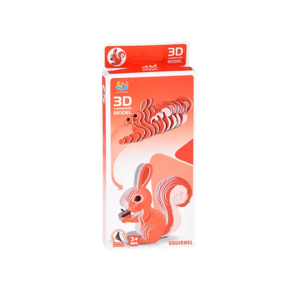 A 3D karton mókus építőkészlet kreatív kihívást és szórakoztató élményt kínál a gyerekeknek.