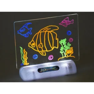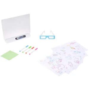 A 3D LED rajztábla varázslatos, világító felületet kínál, amelyen a gyerekek fluoreszkáló filctollakkal készíthetnek újszerű neonrajzokat. A mellékelt 3D szemüvegnek köszönhetően az elkészült művek térhatásúvá válnak, a többféle fényprogram pedig még izgalmasabbá teszi az alkotást.
