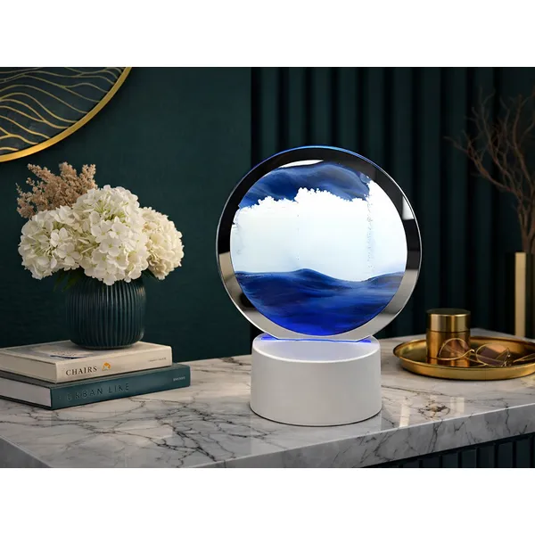 3D mozgó homoklámpa – látványos asztali dekoráció, amelyben a homok folyamatosan változó mintákat rajzol. A nyugodt, „meditatív” látvány hegyvidéki tájakat, sivatagot vagy óceáni hullámokat idéz, miközben kellemes hangulatfényt ad a térnek. Átlátszó keretének és elegáns talpának köszönhetően modern, minimalista és kreatív enteriőrökbe is könnyen illik.