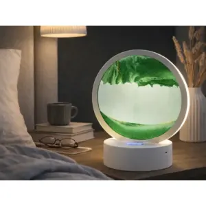 3D mozgó homoklámpa – látványos, nyugtató asztali dekoráció, amelyben a homok folyamatosan változó mintákat rajzol. A lebegő „tájképek” hangulatos fényt adnak, így tökéletes választás otthonra, irodába vagy ajándéknak.