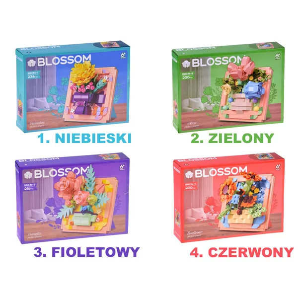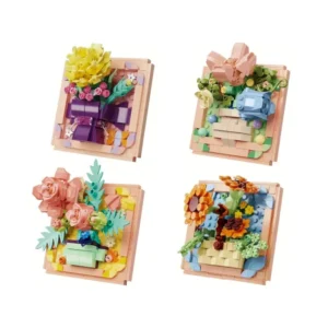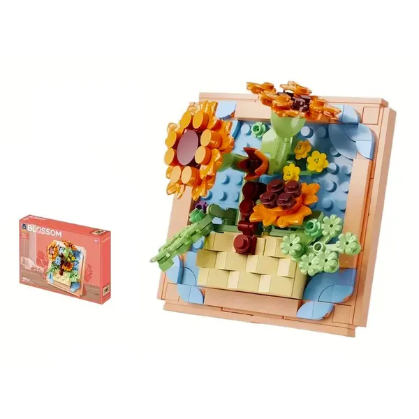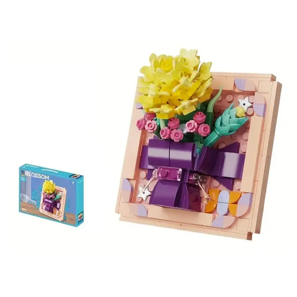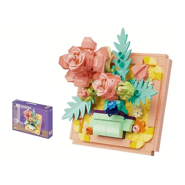 3D virág csokor építőkocka keretben, 200+ darabos, 4 féle modell