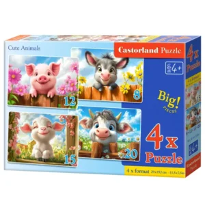Négy különböző, aranyos állatos kép egyetlen 4 az 1-ben puzzle szettben, amely kellemes, mesés hangulatot teremt kirakózás közben. Fejleszti a koncentrációt, a türelmet és a szem-kéz koordinációt, így ideális nyugodt délutánokra vagy közös családi játékhoz.