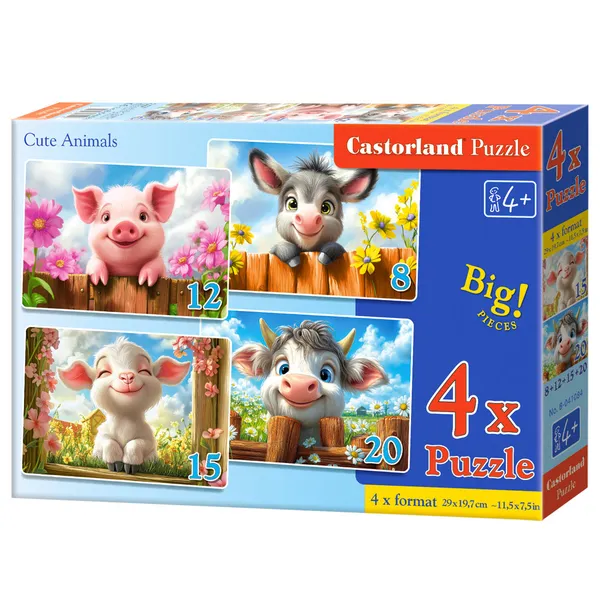 4 az 1-ben gyerek puzzle aranyos állatokkal, 4 kép, 29×19,7 cm