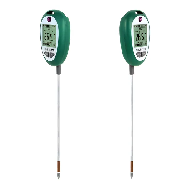 A 4 az 1-ben multifunkciós talajteszter gyors és kényelmes segítség kertben, üvegházban és szobanövényeknél is. Egyetlen eszközzel ellenőrizheti a talaj pH-értékét, nedvességtartalmát, a fényviszonyokat és a hőmérsékletet, így könnyebben eldöntheti, mikor öntözzön, mikor árnyékoljon, vagy épp milyen talajjavításra van szükség.
