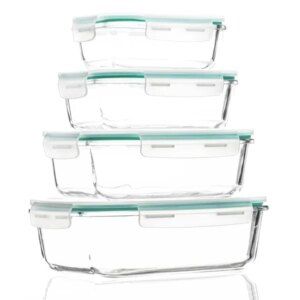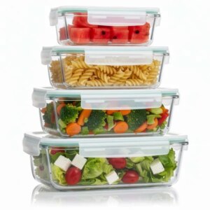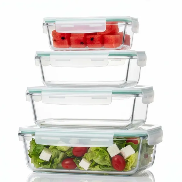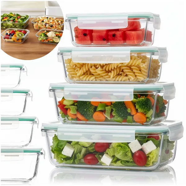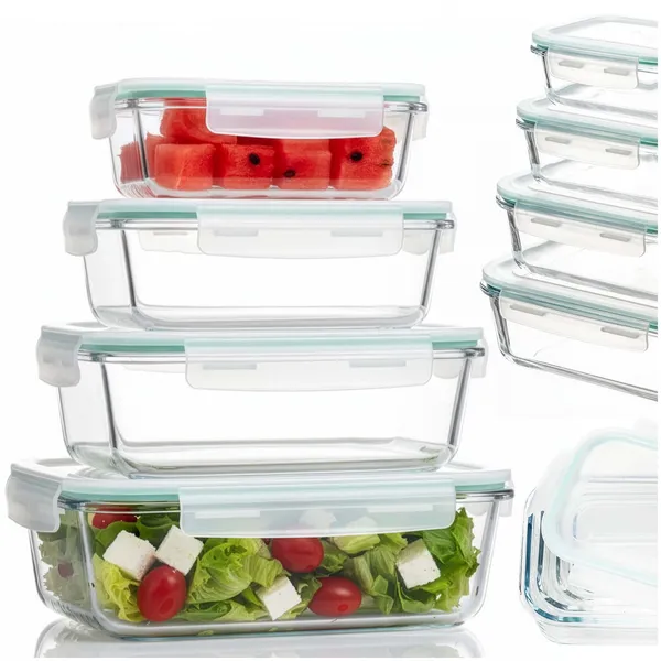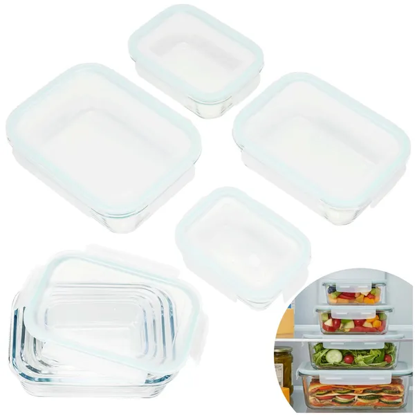 4 darabos edzett üveg ételtároló készlet, amely segít átláthatóan rendszerezni a hűtőt és biztonságosan tárolni az ételeket. BPA-mentes, tömítőcsíkos fedővel zár, mosogatógépben tisztítható, fagyasztóba tehető, és fedő nélkül mikróban is használható.