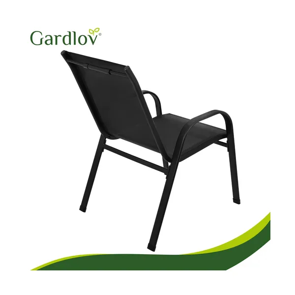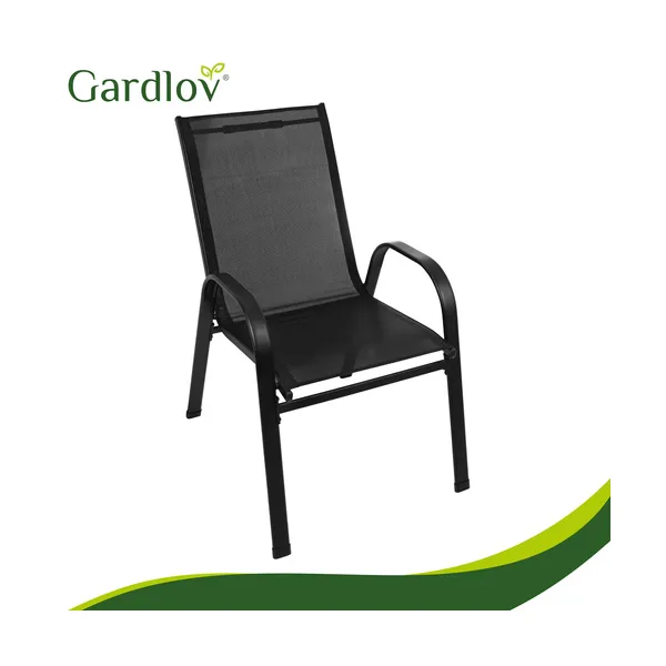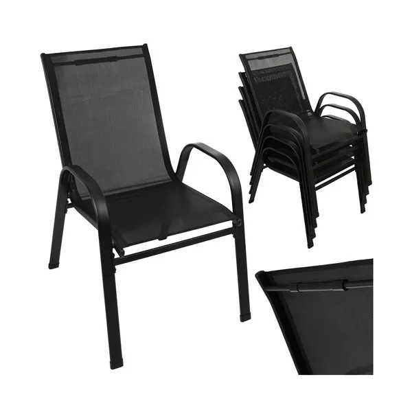 Helytakarékos, egymásra rakható kerti szék szett 4 főre, stabil porfestett fém vázzal és szellős PVC ülőfelülettel. UV-álló, könnyen tisztítható, így erkélyre, teraszra és kertbe is kényelmes, tartós választás.