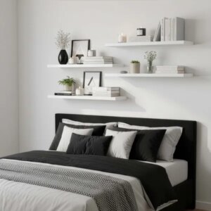 A 4 darabos falipolc készlet segít rendet teremteni és stílusosan kihasználni a falfelületet. A fehér MDF polclapok és a fekete fém tartók modern, kontrasztos megjelenést adnak, így jól illenek nappaliba, hálóba, előszobába vagy irodába is.