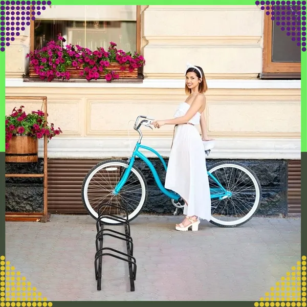 Masszív, nagy méretű, fekete acél kerékpárállvány 4 kerékpár biztonságos és rendezett tárolásához. Ideális garázsba, udvarra, tárolóba vagy társasházi kerékpártárolóba, ha szeretnéd elkerülni a felborulást és a felesleges helyfoglalást.