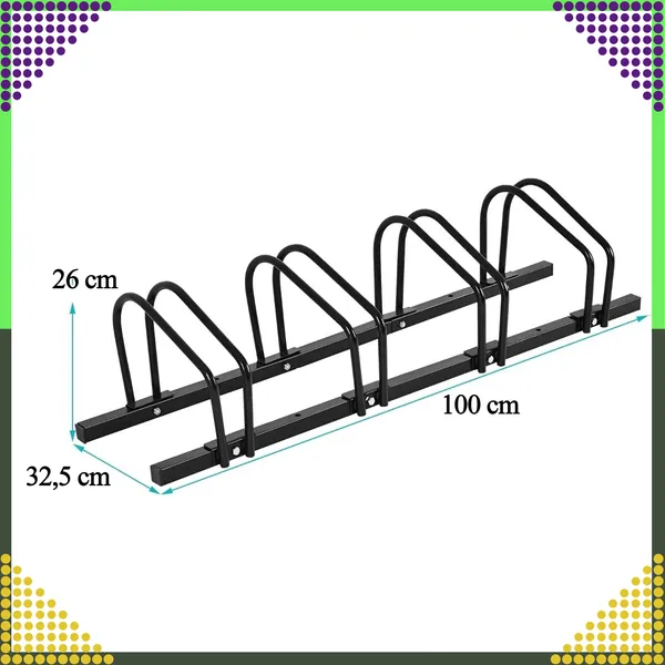 4 kerékpár állvány, acél, fekete, nagy, 100×33×27 cm
