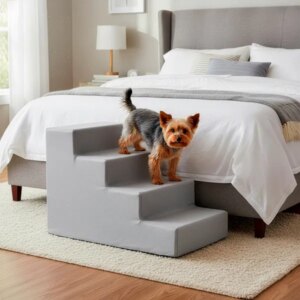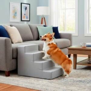 Biztonságos fel- és lejutás a kanapéra vagy az ágyra: ez a 4 lépcsős kutyalépcső kíméli az ízületeket, és stabil, kényelmes megoldást nyújt kölyök, idős vagy kisebb termetű kutyáknak.