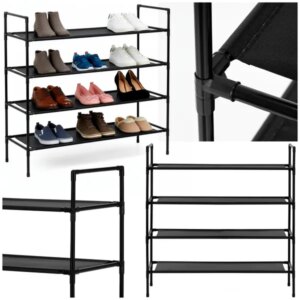 4 polcos fekete cipőtartó állvány 72×28×75 cm, fém–poliészter