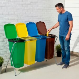 Négy rekesszel és színkódolt fedőkkel gyorsan átláthatóvá teszi a szelektív gyűjtést otthon vagy irodában. A zsákrögzítő belső fül és a csúszásgátló lábak tisztább használatot és stabil elhelyezést adnak, a könnyű fém váz pedig megkönnyíti a mozgatást.