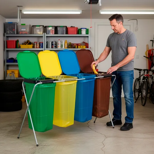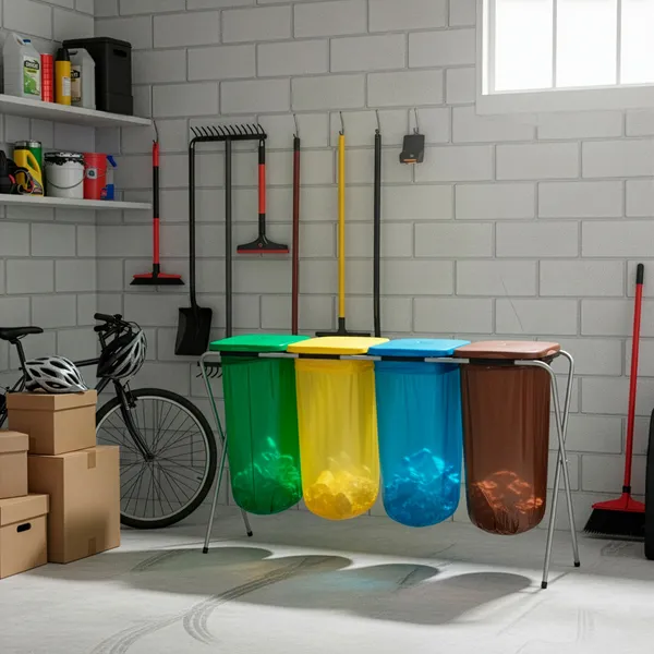 Praktikus megoldás a szelektív gyűjtéshez otthon és munkahelyen. A 4 rekeszes hulladékszelektáló állvány stabil, mégis könnyű fém vázzal és színes fedőkkel segíti a mindennapi rendszerezést. A fedél belső rögzítőfüle a zsákot a helyén tartja, így a csere gyors és tiszta.