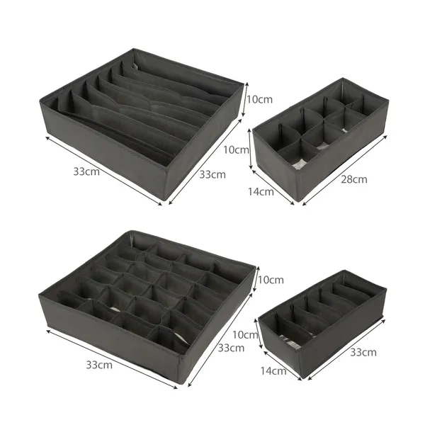 4 részes fehérnemű rendszerező szett, szürke, összehajtható