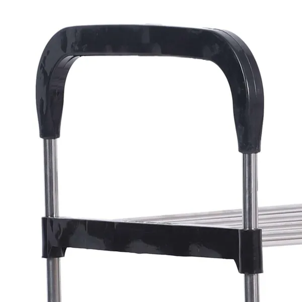 4 szintes cipőtartó polc fém vázzal, fekete-ezüst 60×28×84 cm