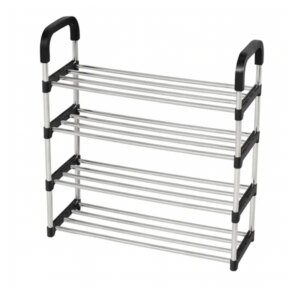 Ez a 4 szintes cipőtartó polc praktikus és könnyű megoldás az előszobába, gardróbba, irodába vagy háztartási helyiségbe. A stabil fém váz és a jól kihasználható polcok segítenek rendezetten tárolni a család cipőit, miközben a kompakt méret kis helyen is elfér.