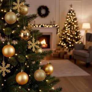 Arany színű, 40 darabos törhetetlen karácsonyfadísz-készlet többféle felülettel, hogy a fa egyszerre legyen elegáns és ragyogó. A könnyű, biztonságos műanyag díszeket az ingyenes akasztókkal gyorsan felteheted, így rövid idő alatt egységes, látványos dekorációt kapsz.