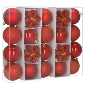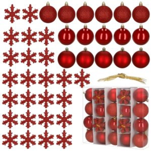 40 db piros, törhetetlen karácsonyfa dísz szett akasztóval