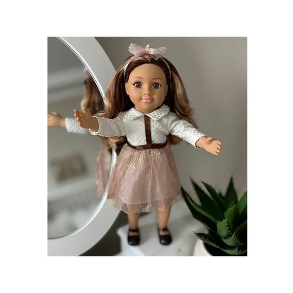 • 48 cm-es divatbaba hosszú, fésülhető barna hajjal