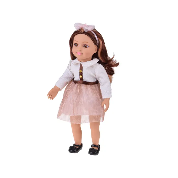 Ez a 48 cm magas divatbaba remek választás minden olyan gyereknek, aki szereti az öltöztetős, frizurakészítős, történetmesélős játékot. Hosszú barna haja fésülhető és könnyen formázható, nagy barna szemei és kedves arcvonásai pedig igazán bájos megjelenést adnak.