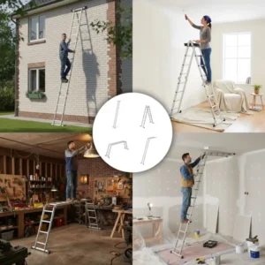Alumínium többfunkciós létra 4×4, 150 kg – megbízható segítség otthoni, kerti és kisebb felújítási munkákhoz. A csuklós, zárható kialakításnak köszönhetően gyorsan a feladathoz igazítható, a könnyű, korrózióálló alumínium szerkezet pedig egyszerű szállítást és tárolást tesz lehetővé.