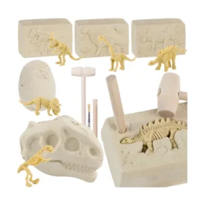 Áss, tisztíts és rakd össze a rejtett dinoszaurusz csontvázakat egy izgalmas, kézzel végezhető ásatás során. A kalapács–véső–ecset használata fejleszti a finommotorikát, a koncentrációt és a türelmet, miközben a gyerekek játék közben tanulnak az őslények világáról.