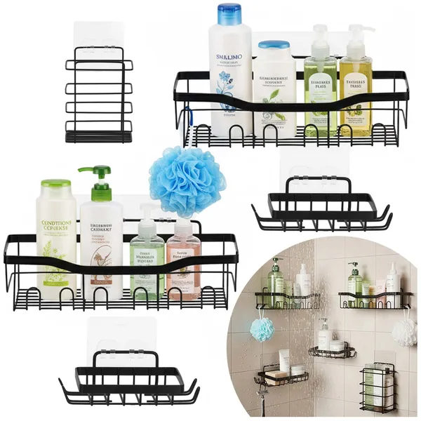Rendszerezd egyszerűen a fürdőszobát vagy a konyhát ezzel az 5 darabos, matt fekete, rozsdamentes acél falipolc-készlettel. Az öntapadós falitartóknak köszönhetően gyorsan felszerelhető, a több méret pedig segít a mindennapi holmik átlátható, helytakarékos tárolásában.