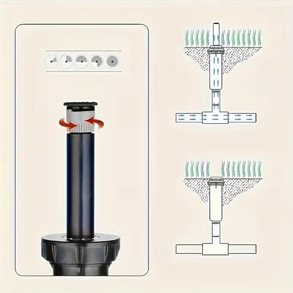 Öt darab felugró, 360°-ban forgó szórófej egy készletben, hogy gyorsan és egyenletesen öntözhess több területet. A forgó szóráskép segít csökkenteni a száraz foltokat, a felugró kialakítás pedig rendezett, diszkrét megjelenést ad a kertben.
