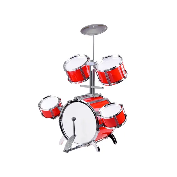 Az 5 dobos gyerek dobfelszerelés ideális választás azoknak a kis zenészeknek, akik szeretnék kipróbálni a dobolást. A készletben minden megtalálható a játékhoz: dobok, cintányér, dobverők, pedálos nagydob és egy kényelmes ülőke. Az élénk piros szín és a részletgazdag kidolgozás valósághű megjelenést ad, így a gyakorlás még izgalmasabb.